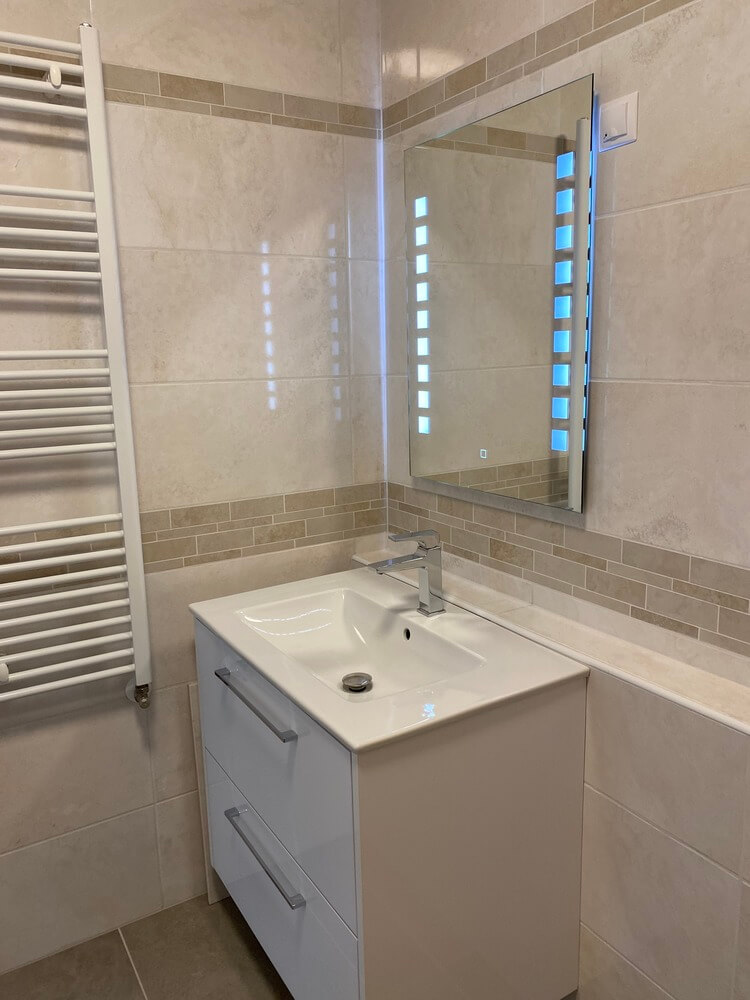 - Mindkét fürdőszoba káddal felszerelt, az egyikben automata mosógép található.